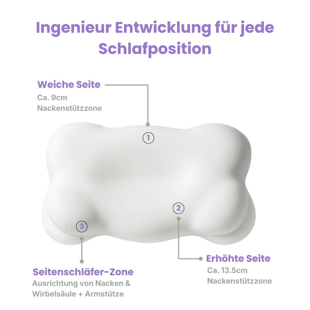 Ideal für Seitenschläfer, ohne Einschlafen auf tauben Armen oder verspannte Schultern.